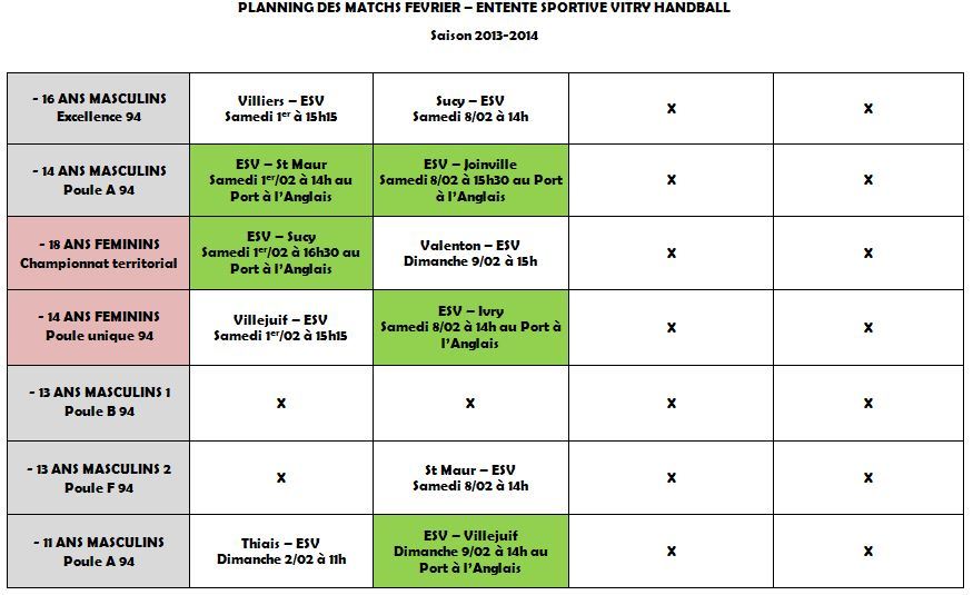 Planning de Février pour l'ESV